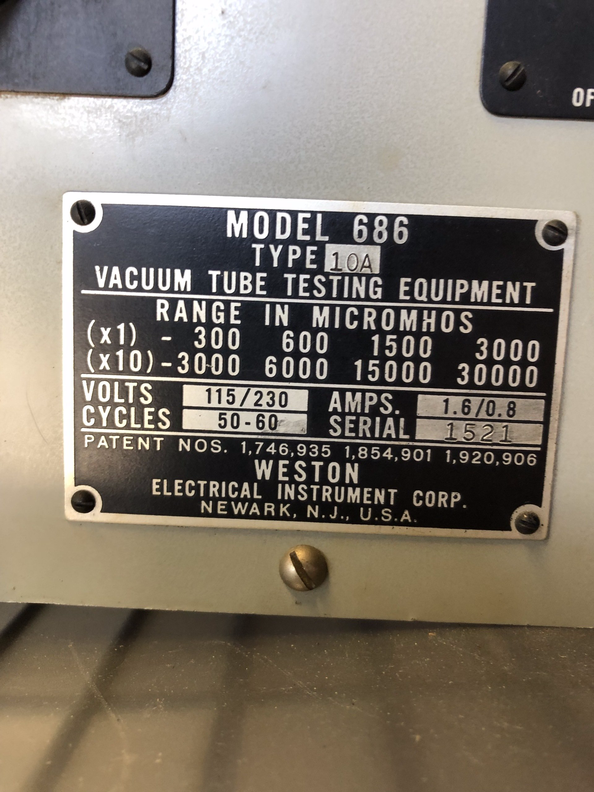 The Weston 686 is a direct Gm reading tube analyzer. It was preceded by the Type 9 and a variety of others, and was produced as a military type for the US Navy, as the OD version. There were several earlier military versions as well.